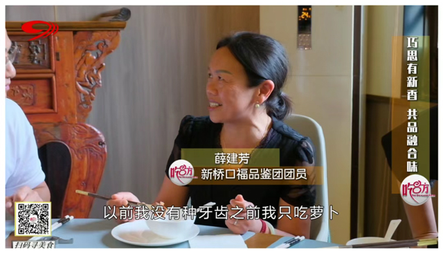 以多种酱料烹制而成,裹挟着浓郁酱汁的肉排与萝卜令人口齿生香。但对缺牙人群而言,吸满了汤汁精华的肉质纤维极易塞牙,反而成了“美食禁忌”。餐桌上,只见种好牙的薛阿姨啃得自在,并表示:“现在我首先就是夹排骨!以前我没有种牙齿之前我只吃萝卜,因为不敢咬的。”