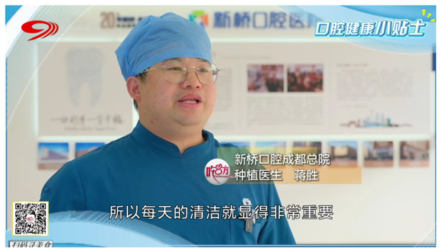种牙后如果清洁不到位,很容易在种植体周围产生菌斑,从而影响种植牙使用寿命。本期“口腔健康小贴士”,便邀请到了新桥口腔成都总院种植医生蒋胜,以“种牙后的口腔清洁方法”为主题,从三个方面针对日常口腔清洁给出了建议,并强调了定期复诊和定期洁牙的重要性,只有做好种植牙的维护,才能延长其使用寿命。