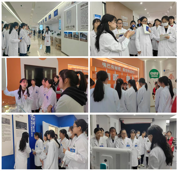活动伊始,新桥口腔工作人员带领同学们依次参观了医院各专科诊室,同时打卡了医院专为儿童及青少年打造的“口腔奇妙屋”科普馆,向大家详细介绍了科普馆五大主题板块,包含牙齿结构模型互动区、口腔趣味知识科普区、口腔进化头骨模型区、口腔治疗老器具展示区、世界口腔医学发展探索区,并利用巨型牙齿模型、趣味互动装置、色彩明快的科普墙等,深入浅出地讲解了口腔健康保健知识,让同学们直观了解口腔健康的重要性。