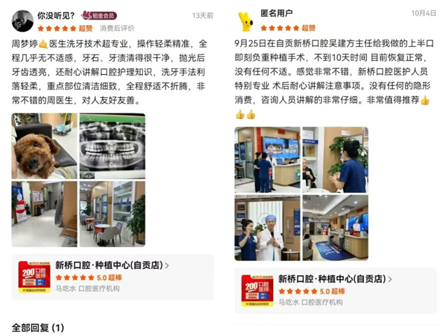 2025年以来,自贡院区在美团平台始终保持着零差评的记录,新桥口腔自贡院区负责人表示,院区能在激烈的市场竞争中脱颖而出,除了依托专业的口腔诊疗技术,更在于始终坚持以“有温度的服务”回应患者需求。